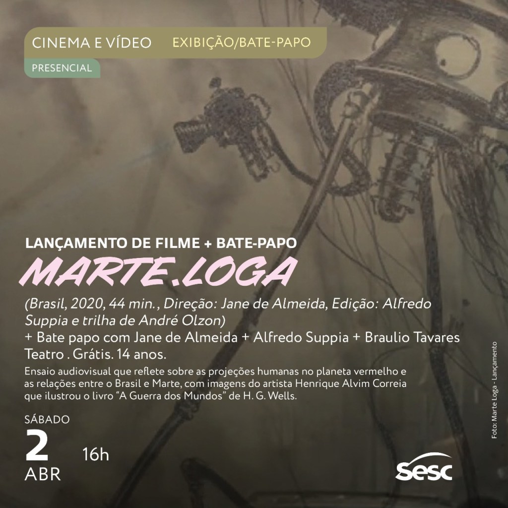 On April 02 (Saturday) we’ll release our film Mars Projections (2020, 44 mins., director: Jane de Almeida, Editor: Alfredo Suppia, Soundtrack: Andre Olzon) at SESC Campinas followed by a talk form Alfredo Suppia and the science fiction writer Braulio Tavares.